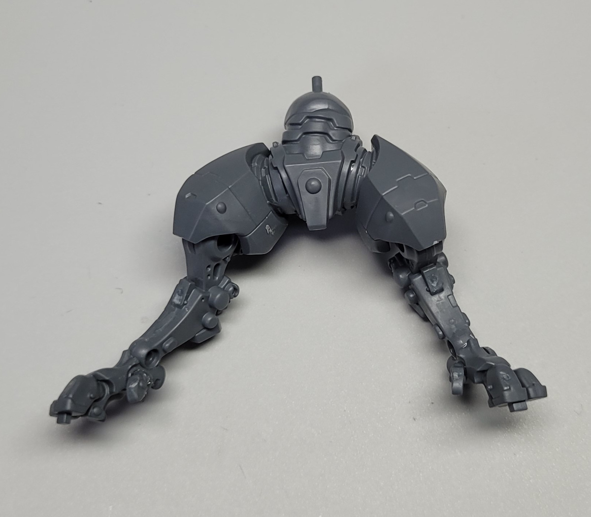 Hier ist die Befestigung echt spannend, denn die Arme werden nicht einfach in Kugelaufnahmen geklebt, wie bei vielen anderen Kampfanzügen, stattdessen kleben sie lediglich an den vorgelagerten Ringen und haben keinen echten Kontakt zum eigentlichen Torso. Das wirkt erstmal etwas zerbrechlich (und die winzigen „Einrastpunkte“ der Arme in die entsprechend winzigen Aufnahmen der Ringe zu drücken ist etwas fitzelig), am Ende ist das Ganze aber erstaunlich stabil.