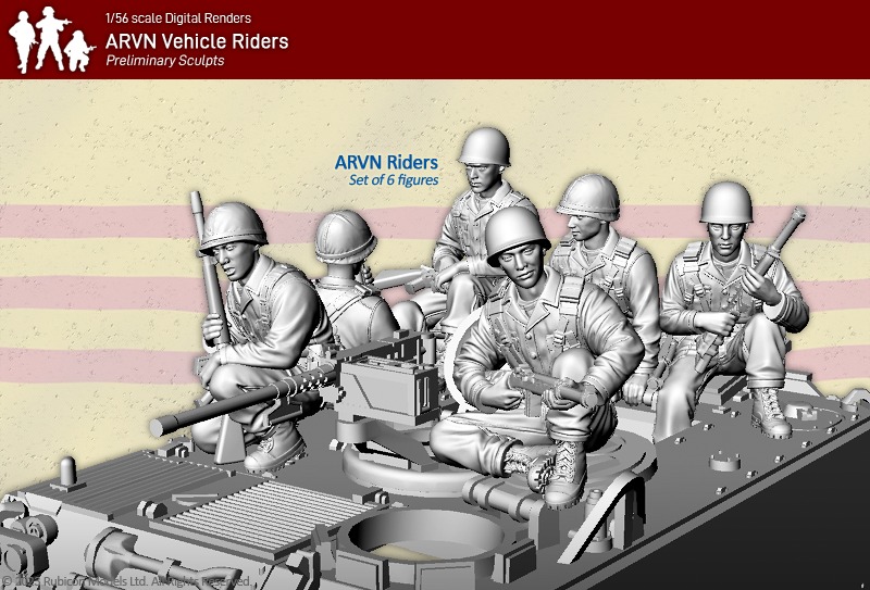 Here are some ARVN APC Rider preliminary sculpts… set of 6 figures.