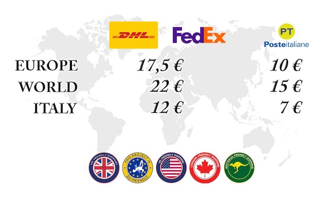 Shipping costs are not included within your pledge, you’ll be able to select your preferred option after the end of the campaign on the Pledge Manager survey. You’ll find two options, standard via International Registered Mail of Poste Italiane, or express shipping as an add-on.
