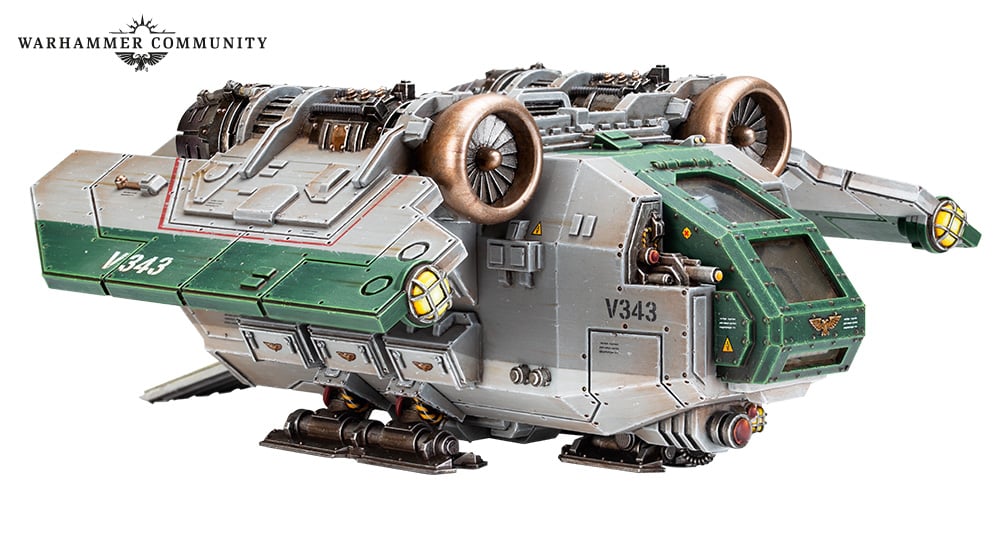 Weapons? You don’t need weapons where you’re going* – the Arvus Lighter is a loyal beast of burden, not some jumped-up glory-chasing gunship. The strength of an army is borne on the back of its logistics,** and nothing ferries men and materiel around a busy battlefield quite like this purpose-built transport craft.