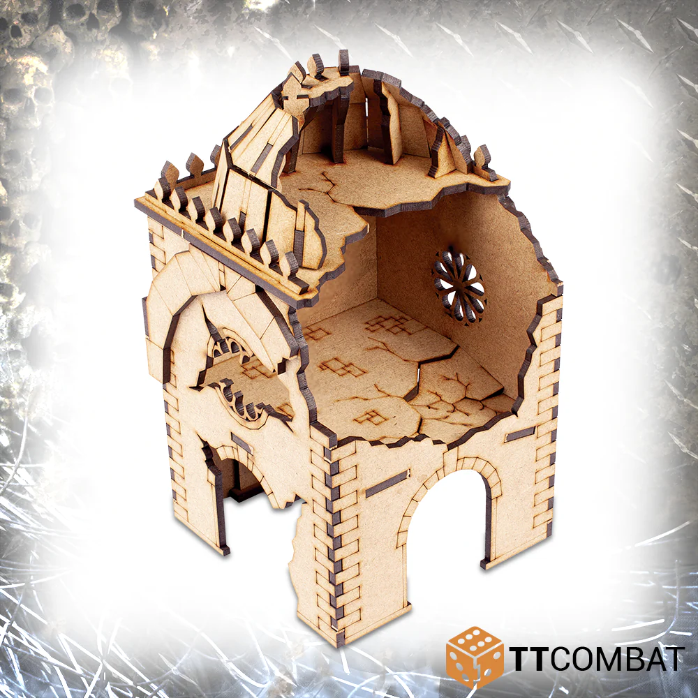 These ruins provide a large centrepiece for you Convent board with points to connect it to the rest of our Convent range. It has a high point for added range and partially destroyed sections to give your troops cover.