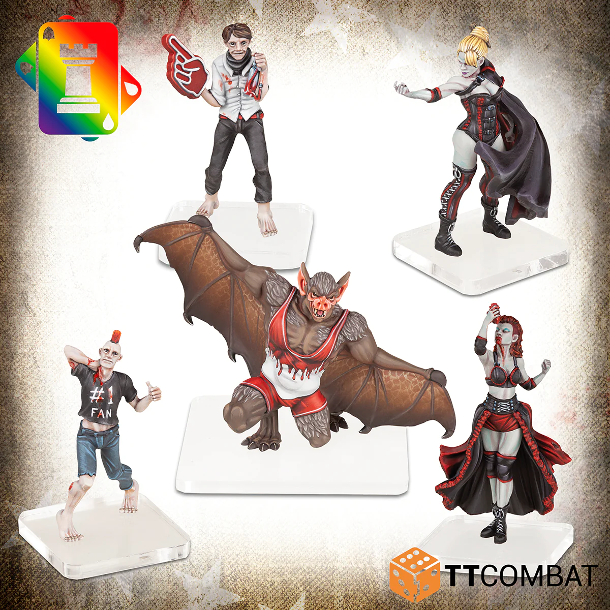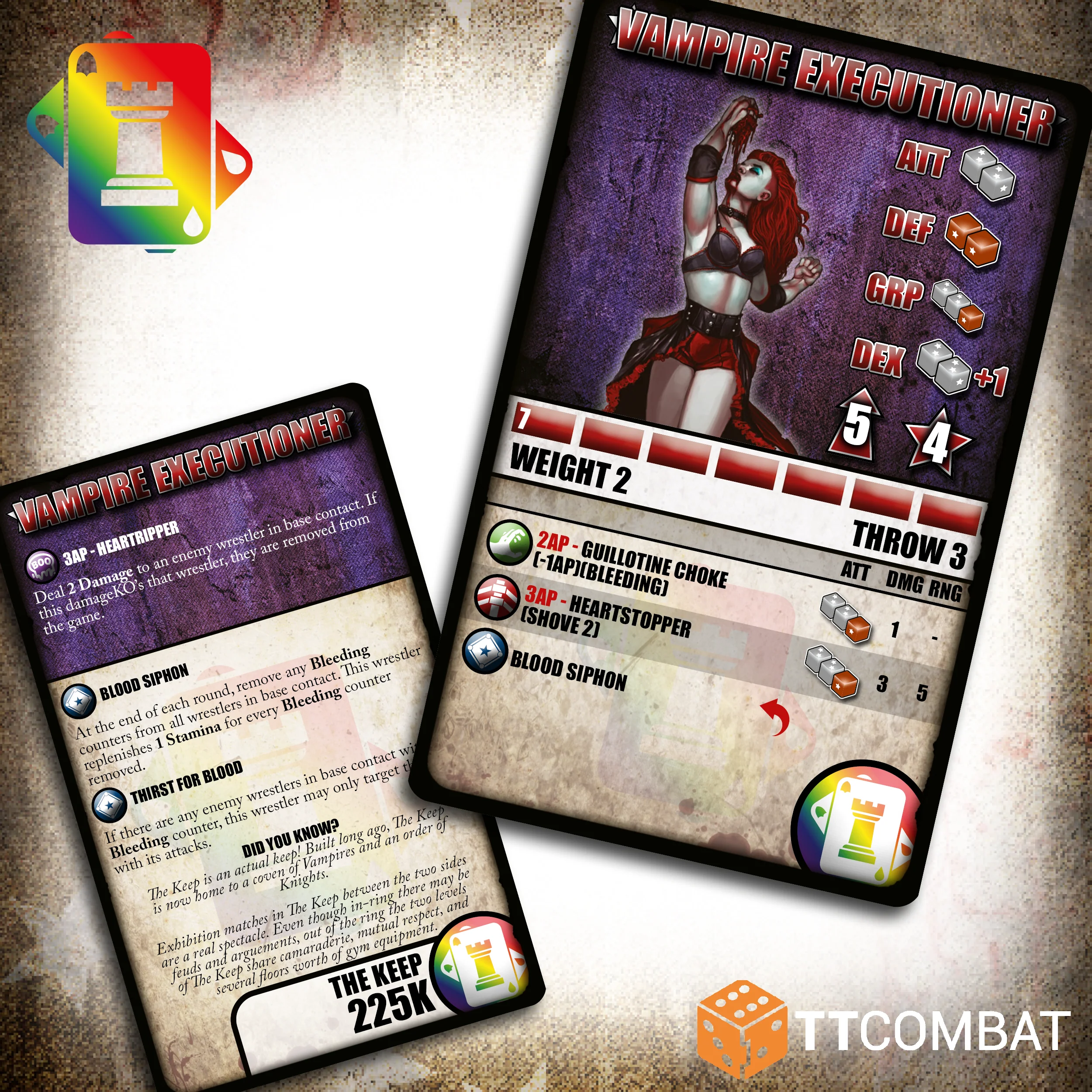 While they might be adverse to natural light, the vampires of The Keep are naturals in the limelight! The Vampire Manbat swoops and swipes from the Turnbuckles as a constant threat from above. On the ground, the Vampire Executioner puts on a bloody show while the Vampire Temptress draws enemy wrestlers in. Backing them up is a pair of trusty Thralls. These plucky mortals are determined to support their co-stars in the hope of one day becoming Vampires themselves!