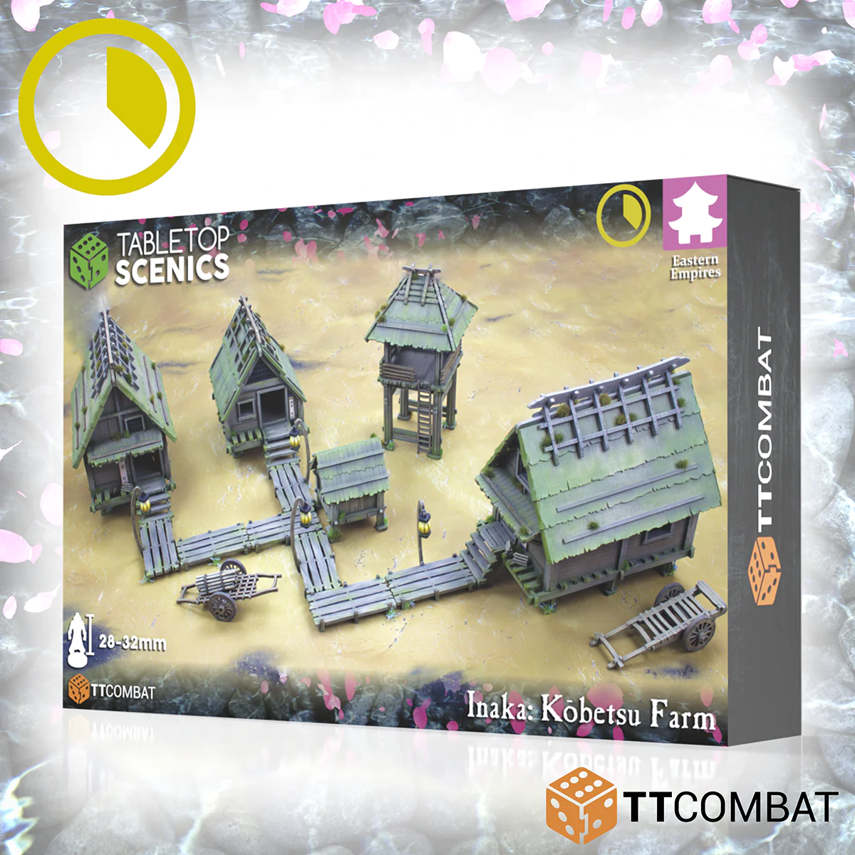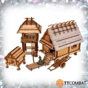 The Inaka: Kōbetsu Farmstead kit, the core of the Inaka range. Consisting of 3 buildings, a watchtower, rice store, carts and walkways. This is an excellent starting point for an Eastern inspired board. Featuring removeable roofs with detailed interiors, playability is the core feature of this kit.