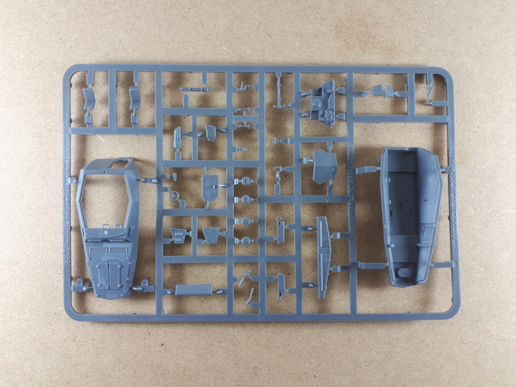 Der Bausatz bietet zusätzlich zur Grundvariante 250/1 im Vergleich zum vorherigen Bausatz zwei neue Varianten: das 250/3 als Kommandofahrzeug und das 250/10 mit einer PAK 35/36. Für das 250/3 ist auch die Option enthalten, es speziell als Rommels Kommandofahrzeug in Nordafrika zusammenzubauen – inklusive Figur und spezieller Decals. Generell verfügt das Fahrzeug über viele Details, gerade auch im Innenraum (auch wenn man davon zugegebenermaßen am Ende eher wenig sieht).