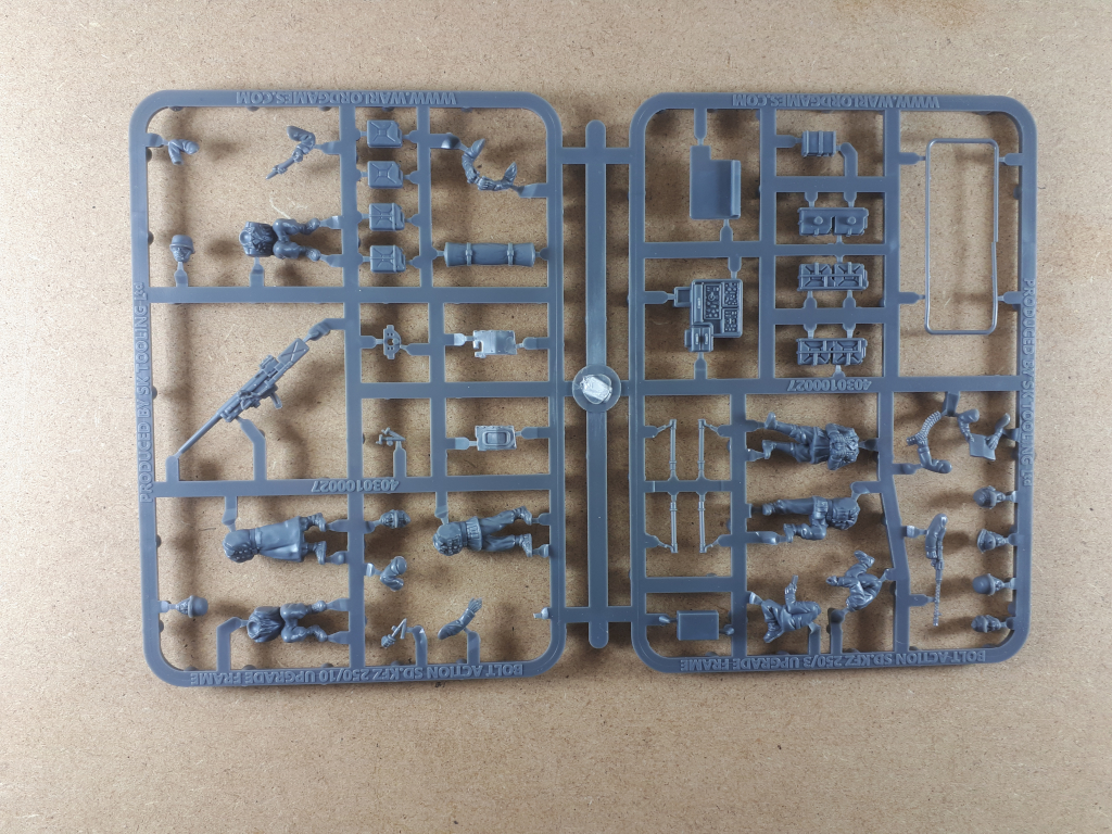 Mit dem Humber Armoured Car haben wir einen kleinen Nachzügler aus dem aktuellen Bolt Action Starterset „A Gentleman’s War“. Unser Humber Car kam ohne zusätzliche Verpackung in einem Zip-Beutel. Die deutschsprachige Anleitung lag ausgedruckt bei. Das Modell besteht aus zwei Gussrahmen und man kann damit ein Humber Car MkII oder IV zusammenbauen und hat darüber hinaus noch ein paar optionale Teile.