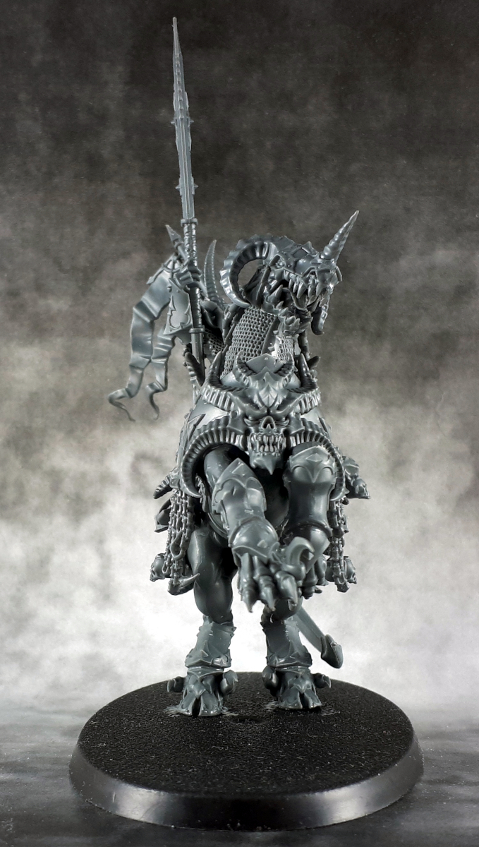 Dieser Bausatz sticht aus dem Release hervor, denn auch wenn die Box komplett im Age of Sigmar Design gehalten ist besteht die Option den Dämonenprinzen auch passend für Warhammer 40.000 zu bauen. Die Box enthält eine Miniatur auf einer 60mm Rundbase.