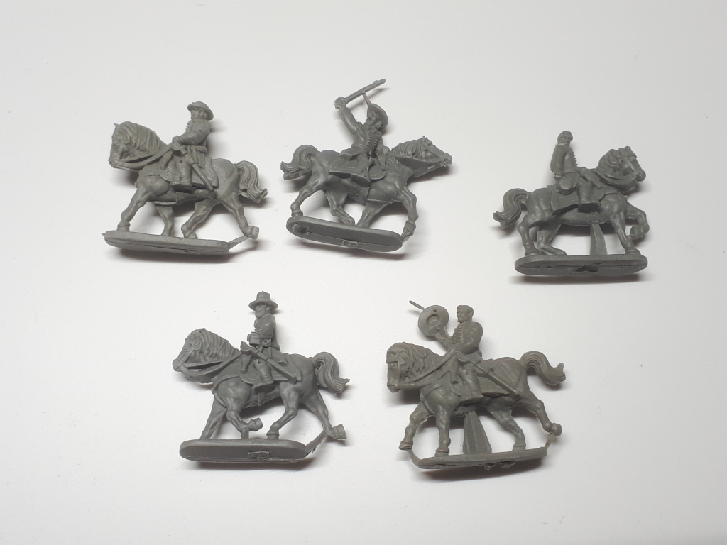 Für so kleine Figuren sind die Generäle überraschend detailliert und vor allem bei den Größenvergleichsbildern fällt noch einmal auf wie viel schärfer der Resinguss gegenüber den Plastikminiaturen ist. Waffen und sogar die Knöpfe sind deutlich zu sehen und sogar die Augen der Pferde wurden modelliert.