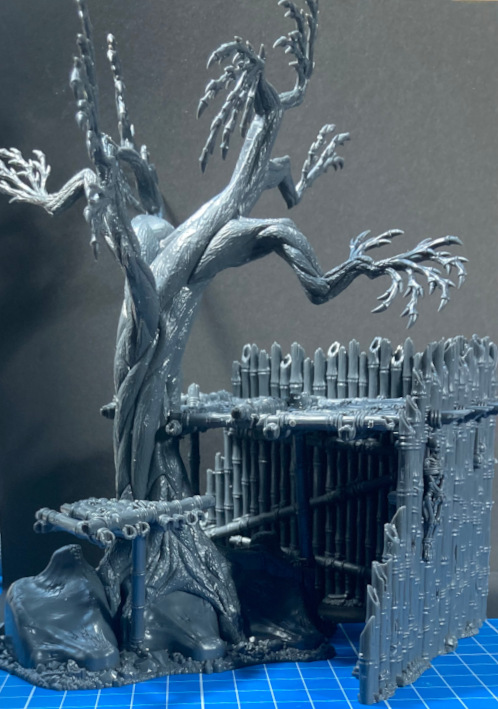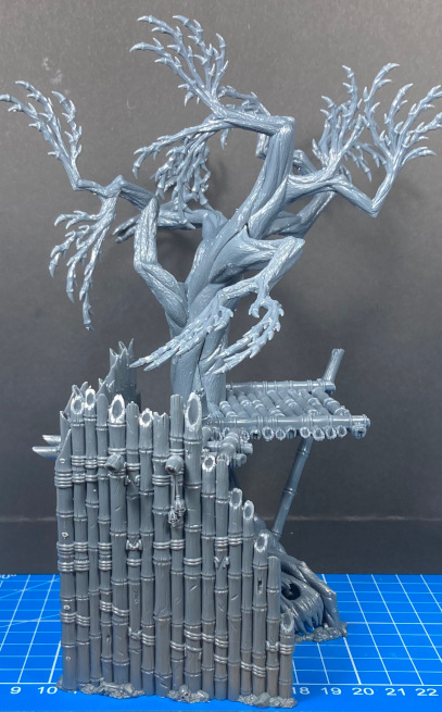 Ein wichtiger Punkt der noch zu erwähnen ist: Es gibt Bauteile in der Anleitung, die erst nach der Bemalung angebracht werden sollen und das sollte man auch tun. Denn gerade eine der Bambuspallisaden bekommt man sonst nicht mehr an den dazugehörenden Baum geklebt.