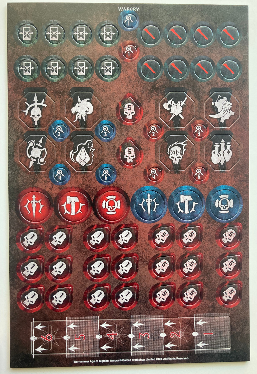 Allerdings habe ich auch ein paar Kleinigkeiten zu kritisieren. Zum einen wäre es meiner Meinung nach wünschenswert gewesen, wenn statt normaler W6 auch Würfel passend zu Warcry in der Box gewesen wären und statt des Posters ein Spielfeld aus Pappe in der Box beiliegen würde. Ich weiß, dies hört sich jetzt nach Meckern auf hohem Niveau an, aber ich finde für eine UVP von 85,00 EUR laut Hersteller, kann man das schon ein wenig erwarten.