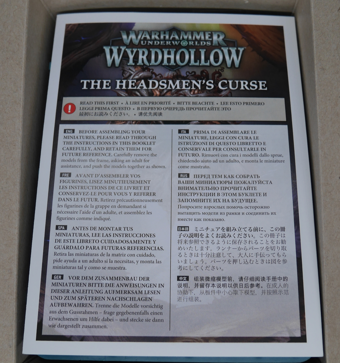 Die Verpackungsreihenfolge bei unserer Box war ungewöhnlich: Im Gegensatz zu den meisten Warhammer Boxen begrüßten uns zunächst die Regelhefte und das Pappmaterial.