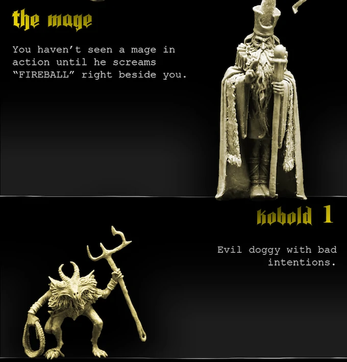 There are 2. The Custom Pledge tier will allow you to pick and mix from the minis in this campaign. The Kobold Dungeon tier will get you every miniature we make available in this campaign. This includes the 4 Heroes, and the 7 kobolds as well as every unlocked stretch goal.