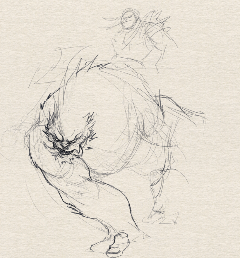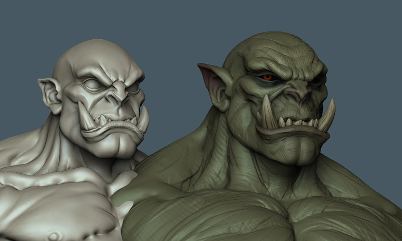 When 3D printers became popular, I wanted to finish the orcs I had started and make them suited for the 3D printer generation. I was less experienced then, and my style wasn’t fully developed yet. Besides, 3D printers have improved a lot, allowing for finer details. Even my stylized sculpts, designed to be easy to print and paint, could benefit. After so many years, I knew the 2019 orcs deserved better. At the end of May, just after the trailer release, I decided to spend a day on ZBrush to make an orc from scratch.