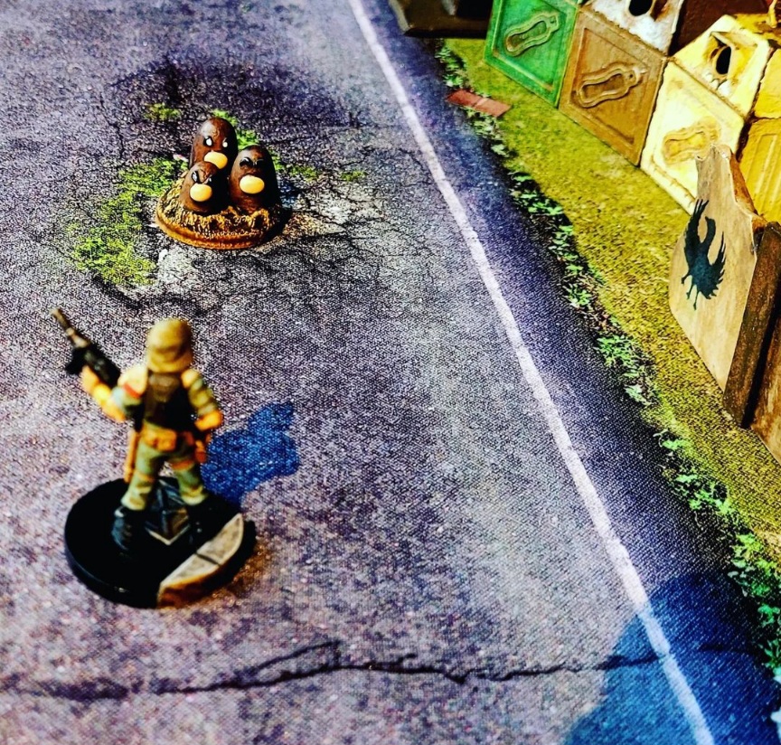 Ich habe die Figur für einen Modiphius-Wettbewerb gebaut. Mir war bewusst, dass ich chancenlos bin. Aber alle Juroren, u.a. Duncan Rhodes, hat es zum Schmunzeln gebracht. Mit der Metallhütte mit dem roten Drachen gewann ich dagegen 2021 den Modiphius-Wettbewerb.