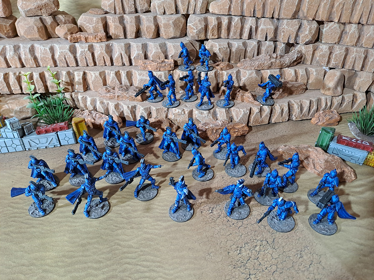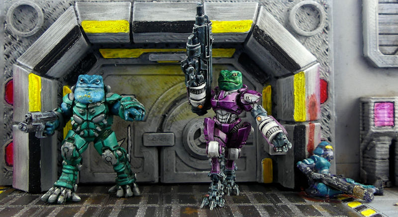das sind alles Modelle aus dem Spiel Takkure. Die Minis im Diorama sind das Islanders Team. Allerdings sind diese nicht für eine MMA-Simulation, sondern für ein Cyberpunk-Rugby-Spiel.