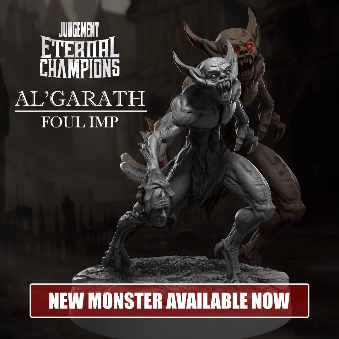 Relatively weak compared to most demons, Al’garath is a spiteful and malicious being that makes up in hatred what he lacks in raw power. He has a unique way of bringing out the worst in his enemies, and they find themselves driven to rage by his taunts, attacking him recklessly and with abandon. Adding Al’garath to your pool of monsters in Judgement, will make for some memorable experiences. He also is an essential addition for any warband that has the halfling warlock Viktor.