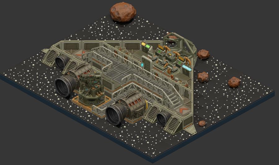 - Interiors, Stars, Asteroïds, Endless corridors, Garages, Landing Platforms…