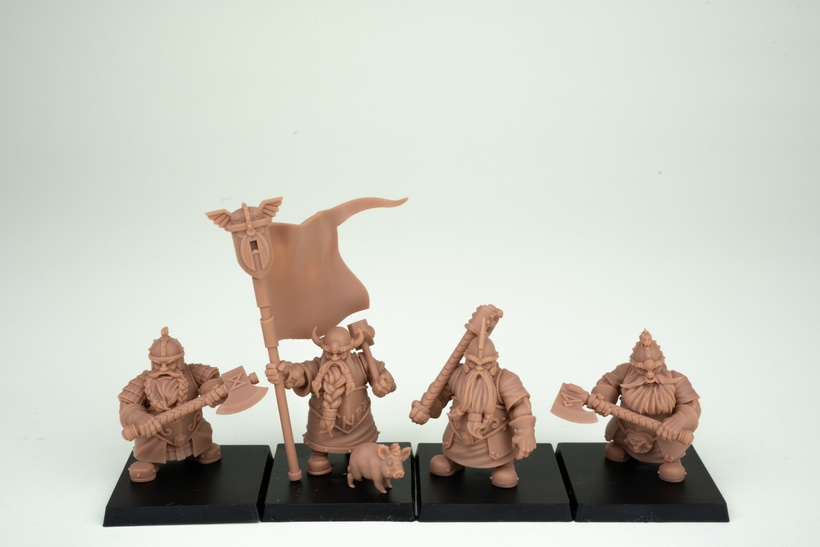 If you know me already, you would know for sure how crazily obsessed I am with Dwarfs, so the first kit of this range could only focus on the Clan Warriors, sturdy and seasoned soldiers ready to defend their stronghold from any enemy. As you can see, the design style of these sculptures is very traditional, perfectly compatible both in size, proportions and overall aesthetics with the historical ranges of the main fantasy wargames. In this first incarnation, the Clan Warriors kit already has a wide variety of assembly alternatives to choose from, not only with the possibility of assembling them with large axes or with shields and hand weapons but also with numerous aesthetic variants available. The 6 variants of heads are provided in two versions: facing right and left, so that you can position them as you like without the volumes of the beard (specifically modified from one version to another) hindering assembly with the various weapon configurations. The unit champion is a separate sculpture, a true minor character that would not be out of place at all as a Thane! I put a lot of effort and passion into designing this first kit!