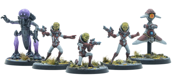 Almost as in answer to our human Power Armor, this group of Zetan Invaders are encapsulated in a set of intimidating highly advanced armor of their own! You might want to make sure your crew is ready to face these cosmic invaders before these 2 Zetan Invaders land on your table! Beaming down to you in September for £20 / $24!