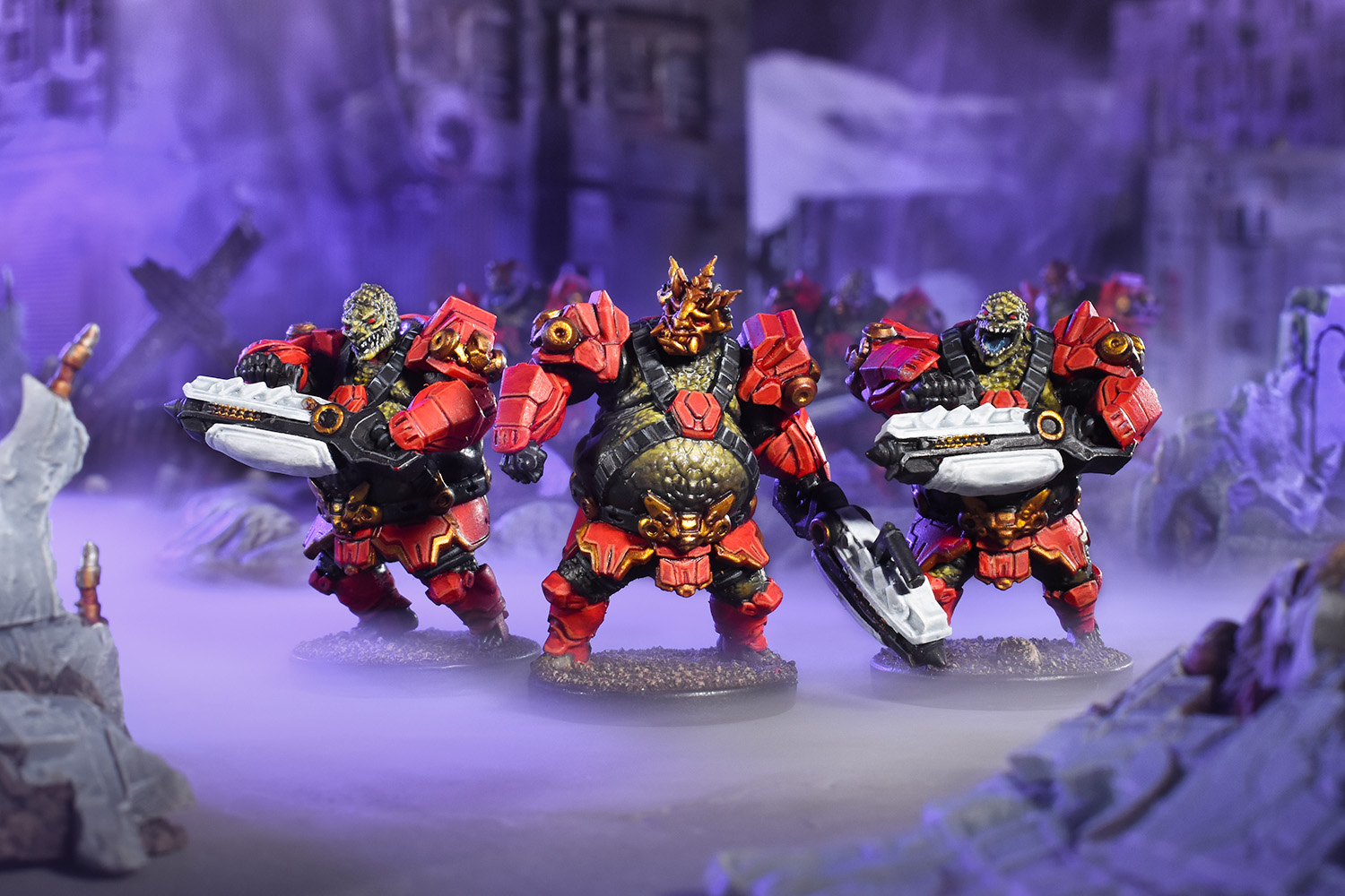 Just like the disgraced houses that are wiped from the history books, the Matsudan were determined to erase all trace of the corporations. Ships were destroyed. Weapons were demolished. None were spared. Both corporations were left bankrupt by the war. Their claims of the advanced tech of the Matsudans were shrugged off by everyone else – after all, weren’t these the simple space lizards that were only capable of playing DreadBall? House Kajima and Kamono Tech vanished into the background, as others greedily feasted on their assets.