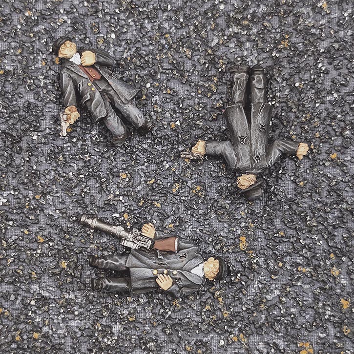 Für mich funktionieren die irgendwie nicht als Verluste. Die Pose ist für mich kein Liegender, sondern eine hingelegte stehende Miniatur. Vermutlich funktionieren die auch als Modell, wenn man sie stehend auf ein Base klebt.