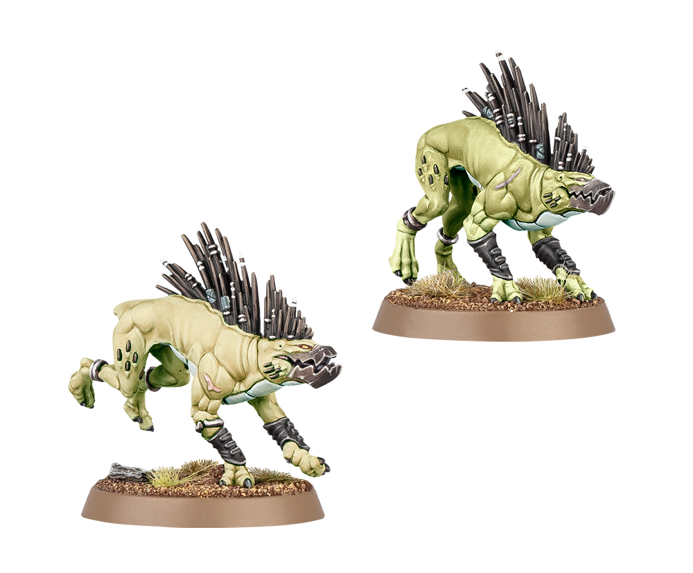 Hunting packs of Koot Hounds are unleashed to savage exposed flanks and chase down fleeing foes, driven into a frenzy by the scent of blood. Their incredible speed can punch through enemy lines to catch vulnerable targets – especially when goaded by an attendant squad of Kroot Carnivores.