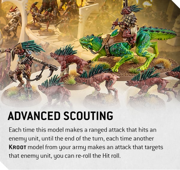 Whatever they use to fight, their shots also serve as guiding beacons to their fellow Kroot, marking priority targets for destruction and guiding attacks to their prey – whether at range or in close combat.