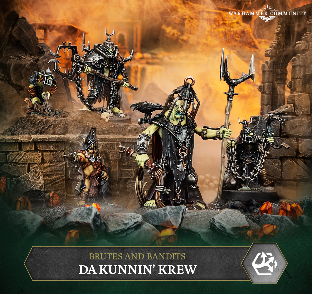 The Brutes and Bandits of Destruction include Grinkrak’s Looncourt, Blackpowder’s Buccaneers, Da Kunnin’ Krew, and Morgok’s Krushas. The kunnin’ gobbos and Kruleboyz are both of the Flex playstyle, while the brutish Ironjawz and the wily Ogor crew become Strike and Mastery respectively.