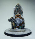 28mm white metal Fantasy Dwarf King on Throne.