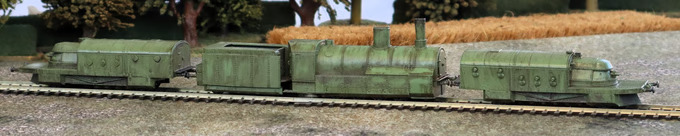 Corner ports for the forward machine gun were added to improve their arcs of fire, and cupolas were added to each of the carriages and the engine, finally a turret with a small 76mm howitzer was added to the firewood tender. The carriage upgrade was retrofitted to many of the Hunhuz series.