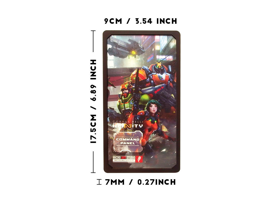 Command Panel is a lightweight and compact accessory designed for Infinity the Game by Corvus Belli. It is a perfect solution to keep control of your orders every turn and have all of the most needed state tokens at hand at all times. It’s also pretty useful to keep track of your opponent’s orders during your reactive turn. And it doesn’t take much space on the side of a table or in your pocket!