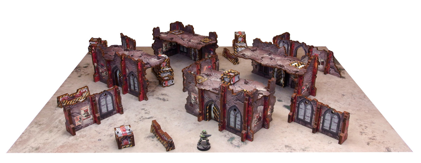 These walls are modular, Heavy terrain walls. There are Imperial themed propaganda posters and optional window shutters for more or less visibility; great scatter terrain;