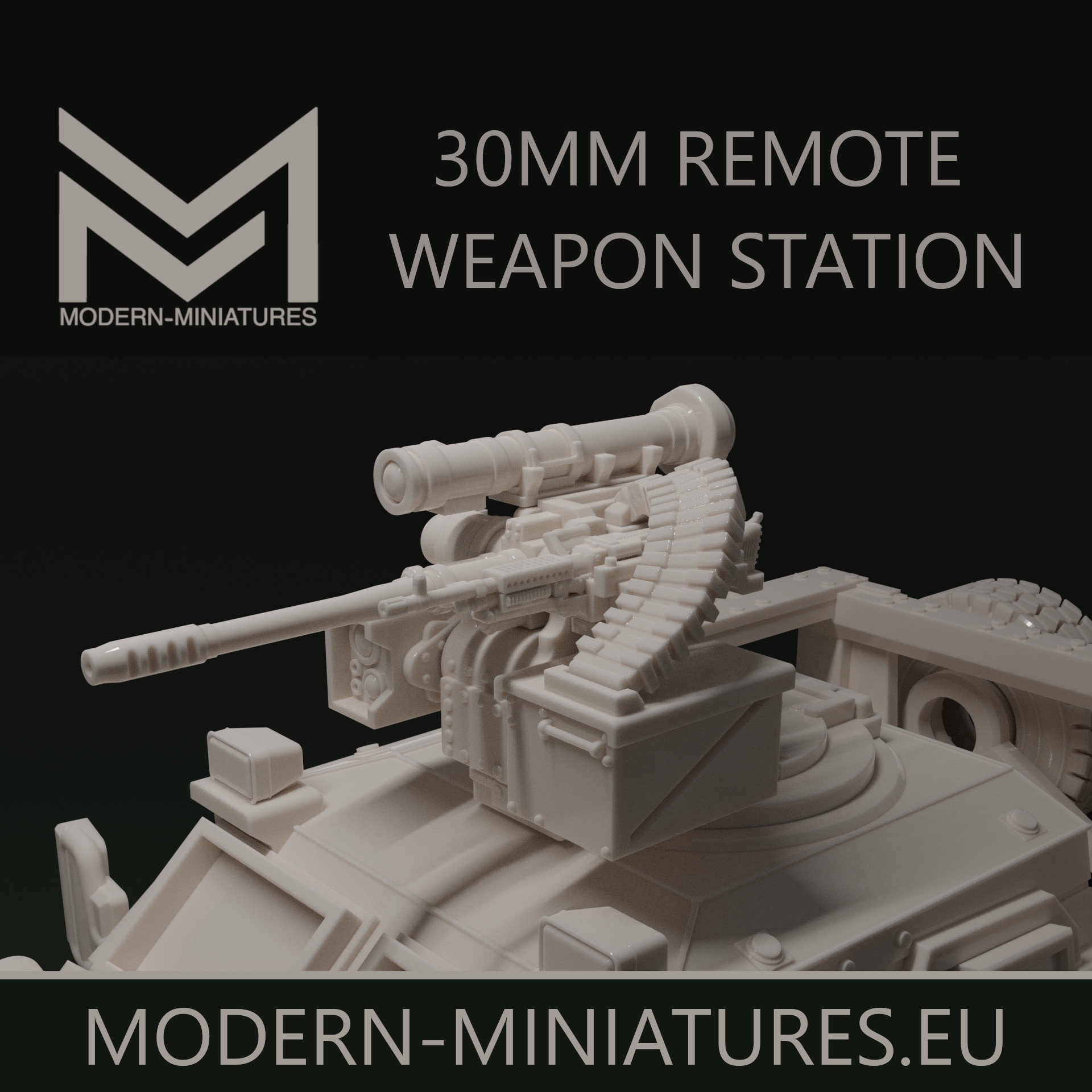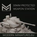 The first one is the 30mm remote weapon station with an laser guided anti tank missle launcher and a 7.62mm M240 machine gun.