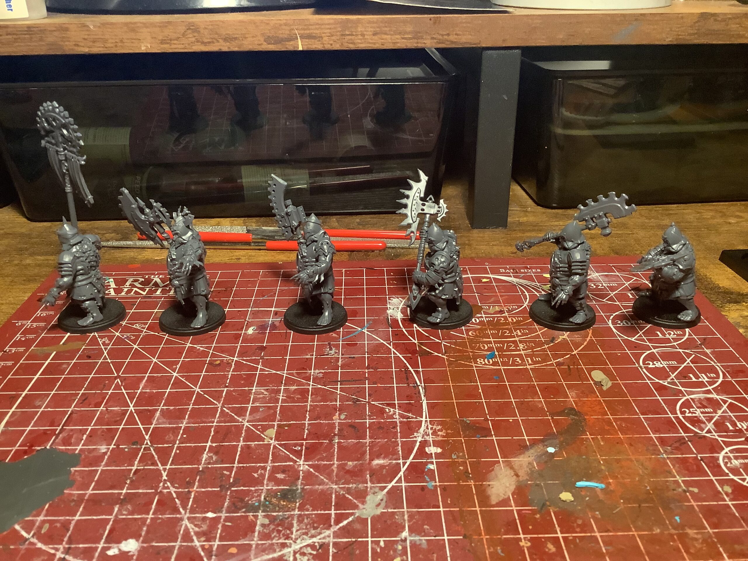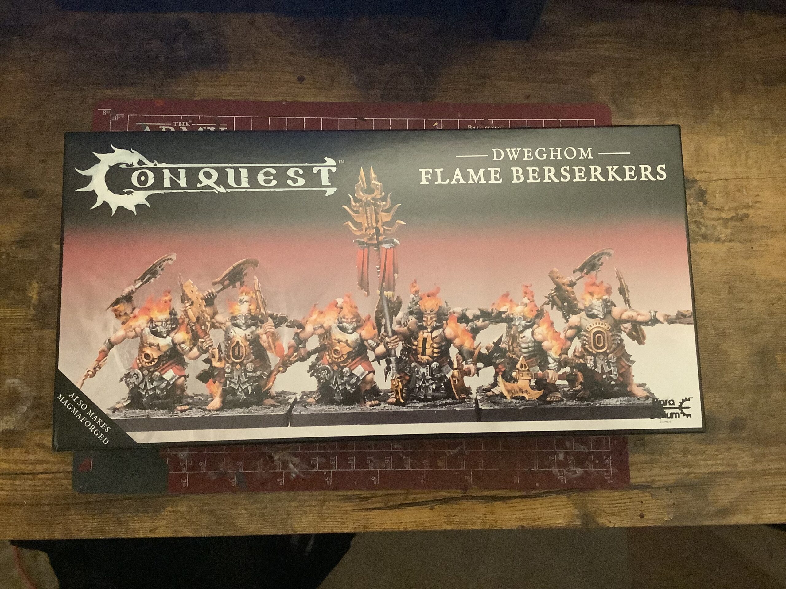 Schwer gepanzerte Linieninfanterie (Magmaforged) und heißköpfige Berserker (Flame … Berserker) mit dem vertrauten Conquest-Stil. Mir gefallen im Falle der Magmaforged vor allem die geschlossenen Helme, die auf die industrielle Natur der Dweghom-Gesellschaft hindeuten.