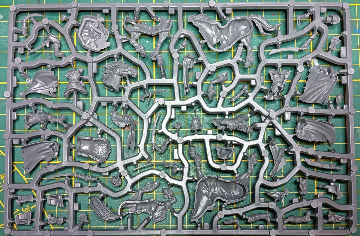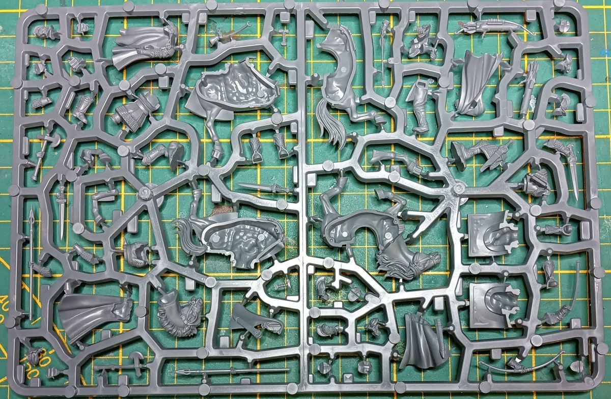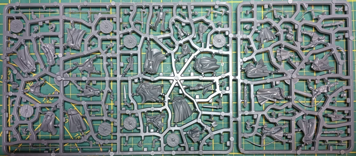 Insgesamt befinden sich in der Box elf Gussrahmen. 4 für die Krieger, 4 für die Häuser, 2 für die Helden und 1 für den Maßstab. Betrachten wir als erstes die gute Seite mit den Kämpfern für Rohan.