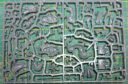 Eine 3 auf 3 Fuß große Play Mat, die doppelseitig bedruckt ist. Auf einer der beiden Seiten sind drei Objektive auf der Mittelinie angezeichnet. Die Spielmatte selbst besteht aus einem dickeren Papier und fühlt sich an wie ein Poster. Auf beiden Seiten wird eine Graslandschaft dargestellt.