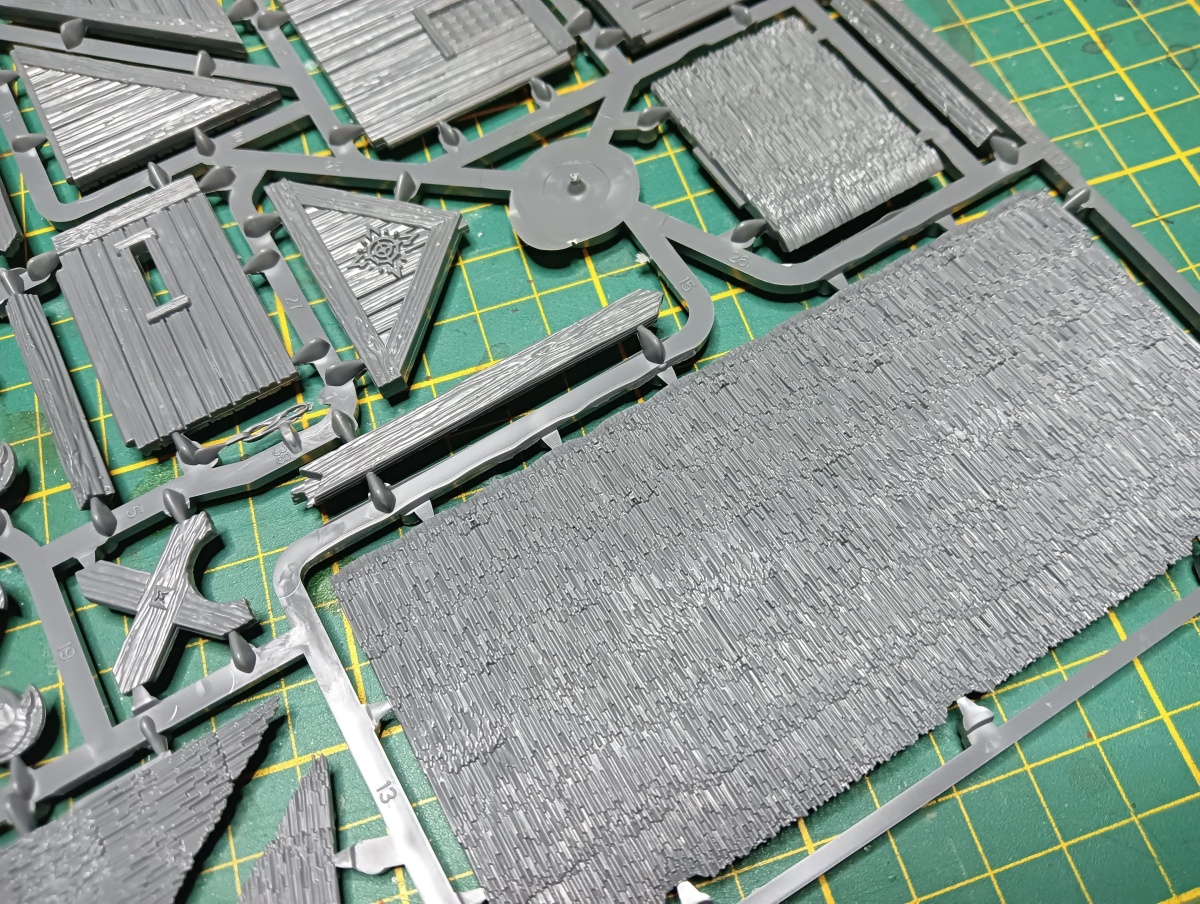 Die Miniaturen sind, bis auf die Häuser, an einigen Stellen sehr filigran und bestehen im Schnitt aus mindestens acht Teilen.