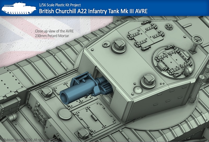 Weekend Teaser for our second week of March… 3D drawings of our British Churchill Mk III AVRE Engineering Vehicle, approximately 700 Built, armed with a Petard 230mm Spigot Mortar. This is still a work in progress, some details might get added, revised, or deleted. We will move on to the next variant soon…