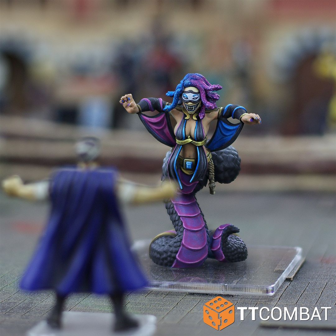 Did you know?Tomoe was a princess, more beautiful than any other, but one day she was caught wrestling. This is something definitely not accepted in the princess hand book. Tomoe did not care, it was her dream to wrestle, she kept disobeying the rules and snuck out every night to the local ring. However, when she was discovered one more she was cursed to be a Gorgon until her wrestling days were done. It turns out the additions of claws, fans and a strong conviction (or constriction) is a massive benefit in the ring!