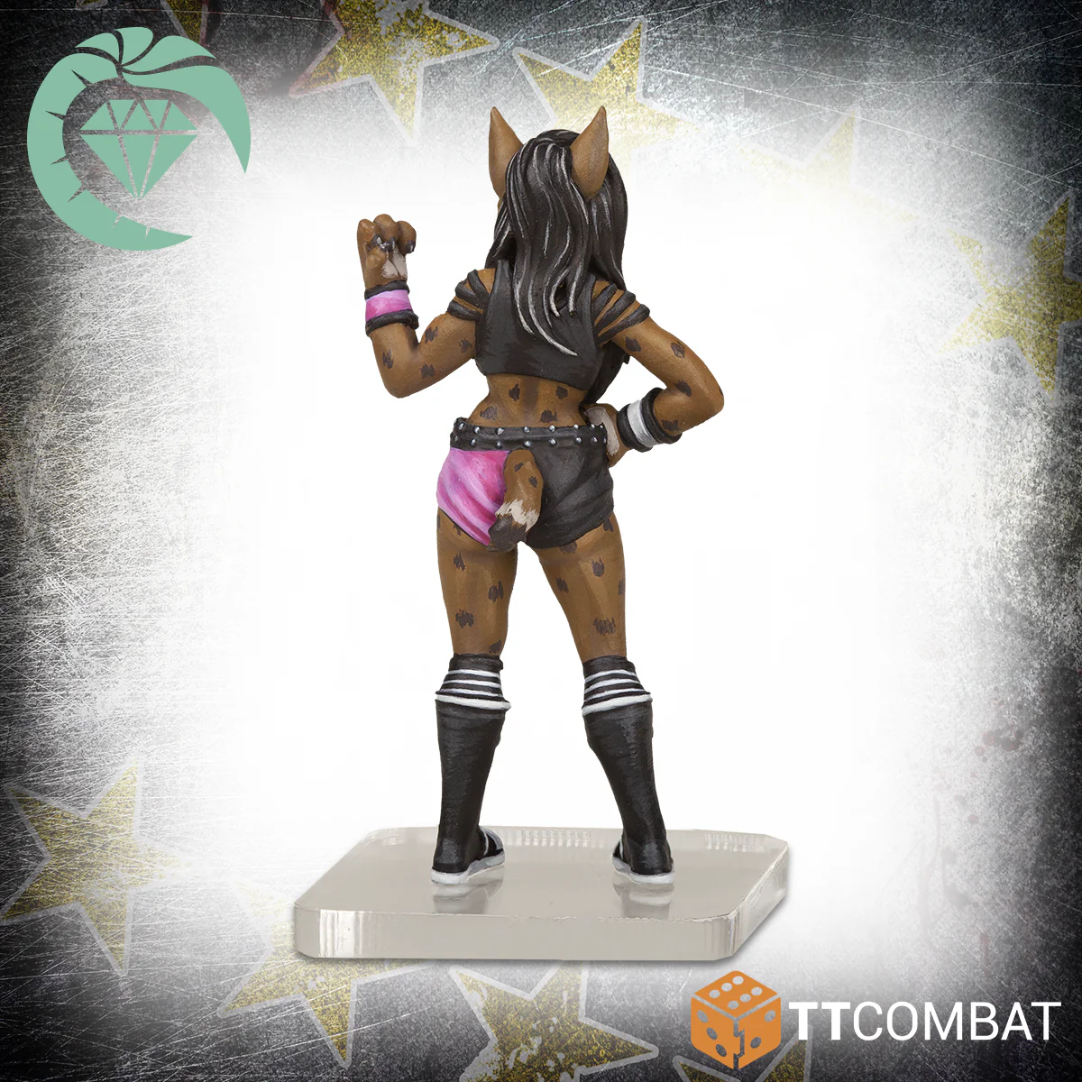 Forced to quit her stint as a pirate, Lynx re-learned how to walk and wrestle with human feet. Though it took a while, she managed to get back into the swing of things and joined the Diamond Oasis. Now she combines traditional Rostani moves with high-flying acrobatics creating a chaotic wrestling style that leaves no one standing.
