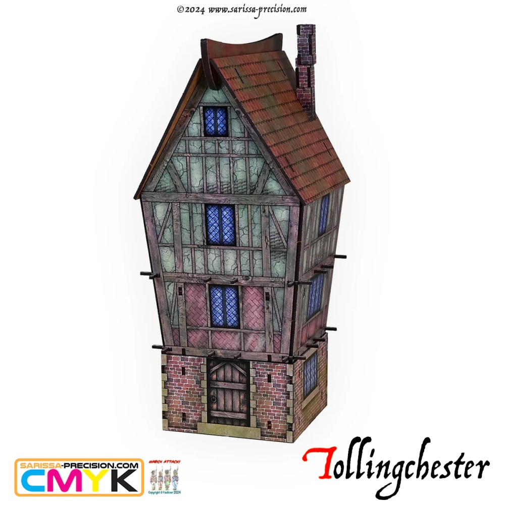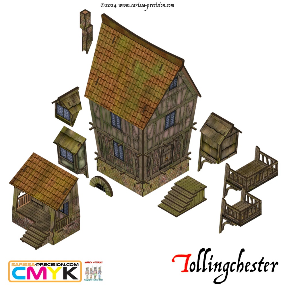 Welcome to Tollingchester, time to explore! Enter the narrow winding streets and wander the boardwalks. From small cottages to tall timbered street houses, balconies and walls abound. Roam at will, as long as you’ve paid the fee.