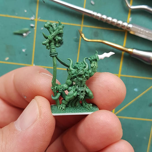 Danke für diese Preview und es ist wirklich beeindruckend, was man beim 10 mm Maßstab noch per Hand alles an Details herausholen kann! :-O … Ich spiele zwar keine Arox, aber der Dude oben schaut sehr beeindruckend aus und ist wohl auch deutlich größer als die regulären Truppen, da er ein legendärer Held ist.