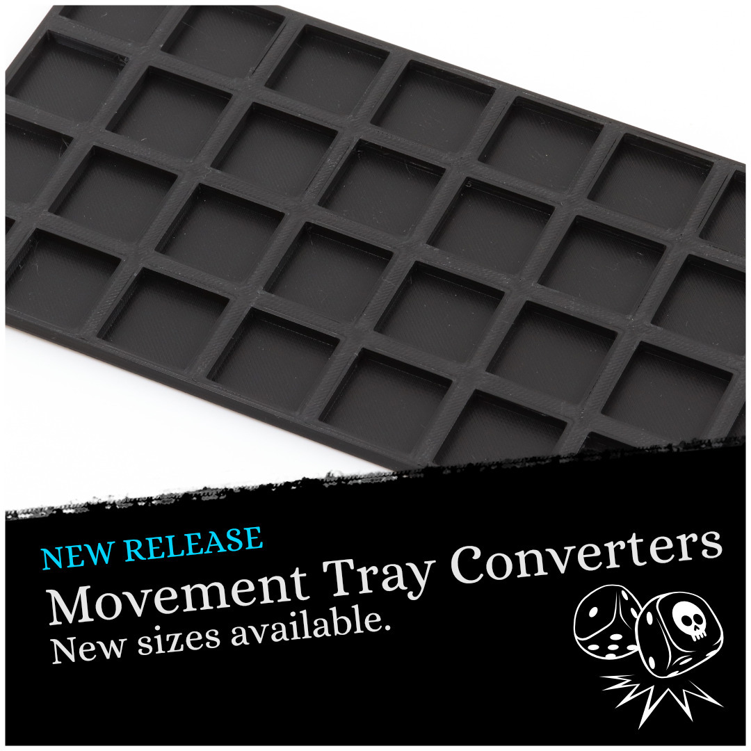 We have new Movement Tray Converters in our range: 20x20mm to 25x25mm 6×4, 20x20mm to 25x25mm 8×4, 25x25mm to 30x30mm 6×3 and 25x25mm to 30x30mm 6×4.