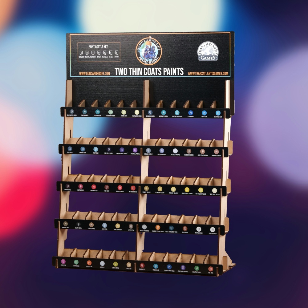 Our friends at Sarissa Precision have created an updated design for their Two Thin Coats paint rack, that will hold all 60 of the new colours.