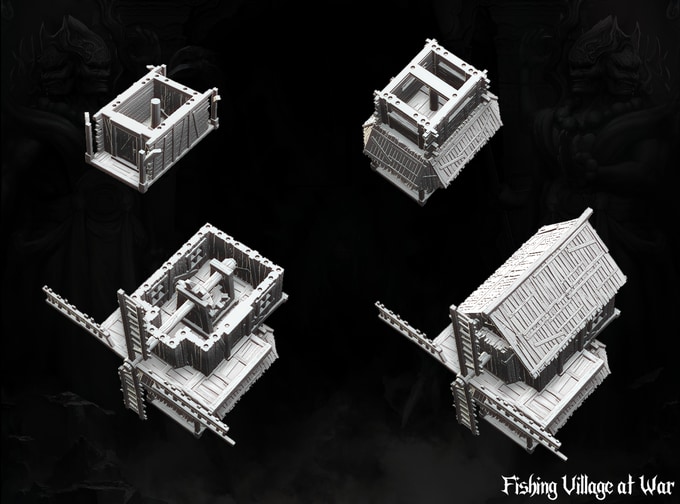 YOUNGHO SON präsentiert seinen 15ten Kickstarter mit druckbarem STL-Gelände, in diesem Fall ein Fischersdorf im Krieg.