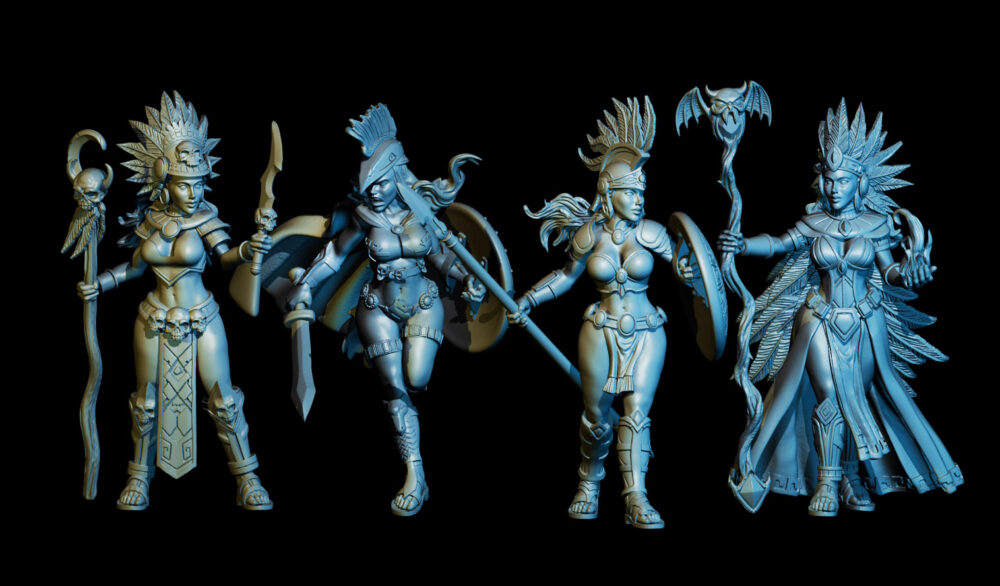 We are preparing some STL models for the upcoming Uncharted Realms RPG. These are an Axibali War Party with a Warrior, Captain, Priestess and Witch. There will be multiple poses for the captain and warrior and an upcoming archer with multiple poses to complete the set.