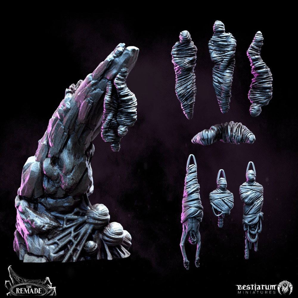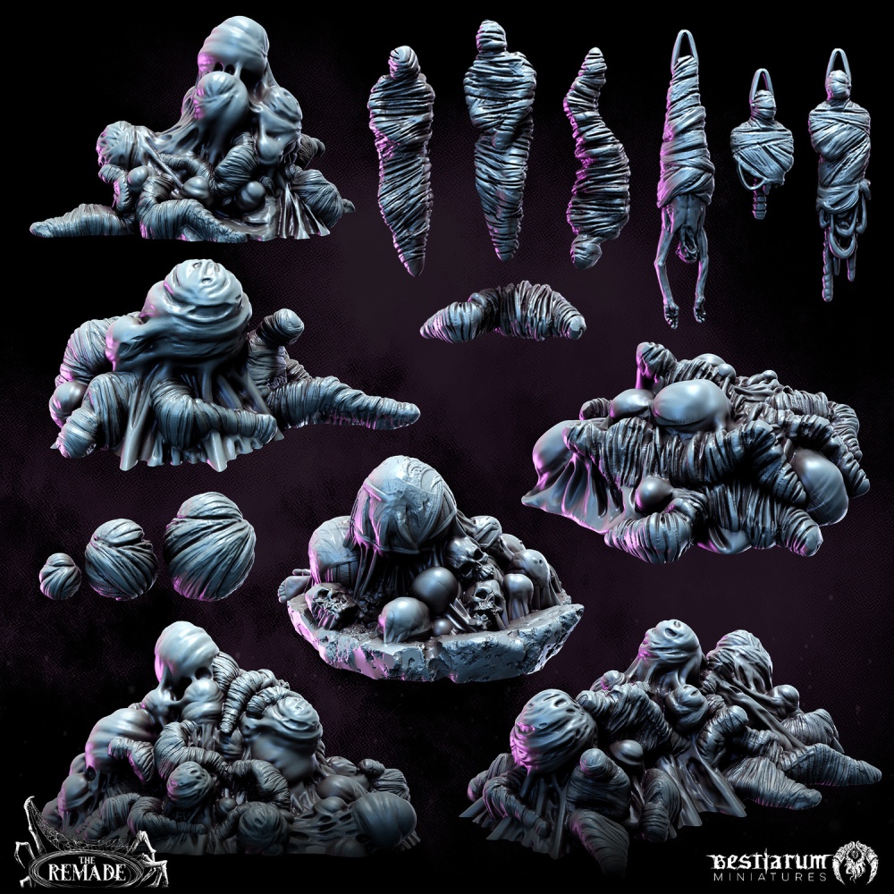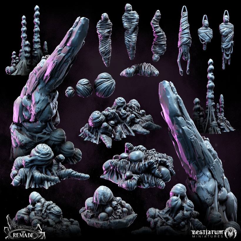 After your feedback, we’ve reimagined our strategy for terrain – Large/FDM Terrain pieces are out for the time being, and we’re refocusing our efforts on scatter terrain & decorations: High impact resources that will immediately change the vibe of your table and match the faction! For the Remade, that of course means eggs and cocoons. We’ve massively expanded the original 3 pieces into a set capable of filling an encounter or skirmish board.