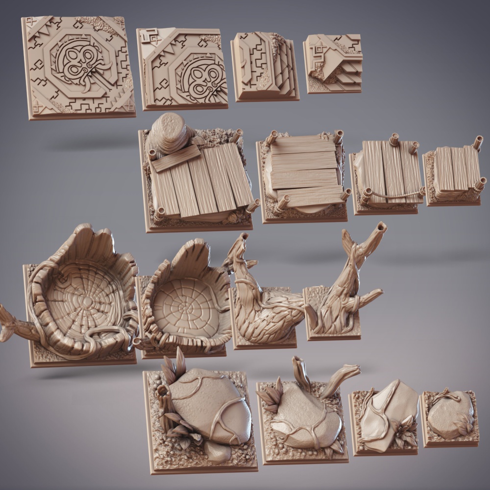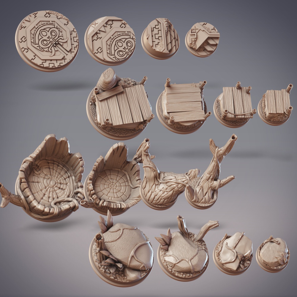 As usual, our fantastic bases and terrain pack was sculpted by Calrais, with concept art from Paul Ferret. And we have an awesome lineup of throwbacks to help you celebrate this spooky season. There’s also a special gift for patrons of this month, a Forg Wizard to guide you on your adventures!