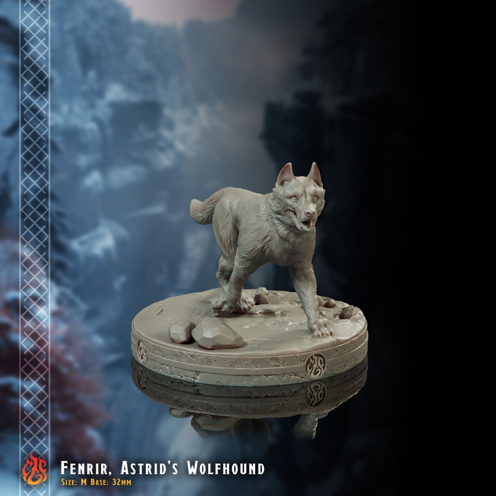 - Fenrir, Astrid’s wolfhound – M, 32mm base