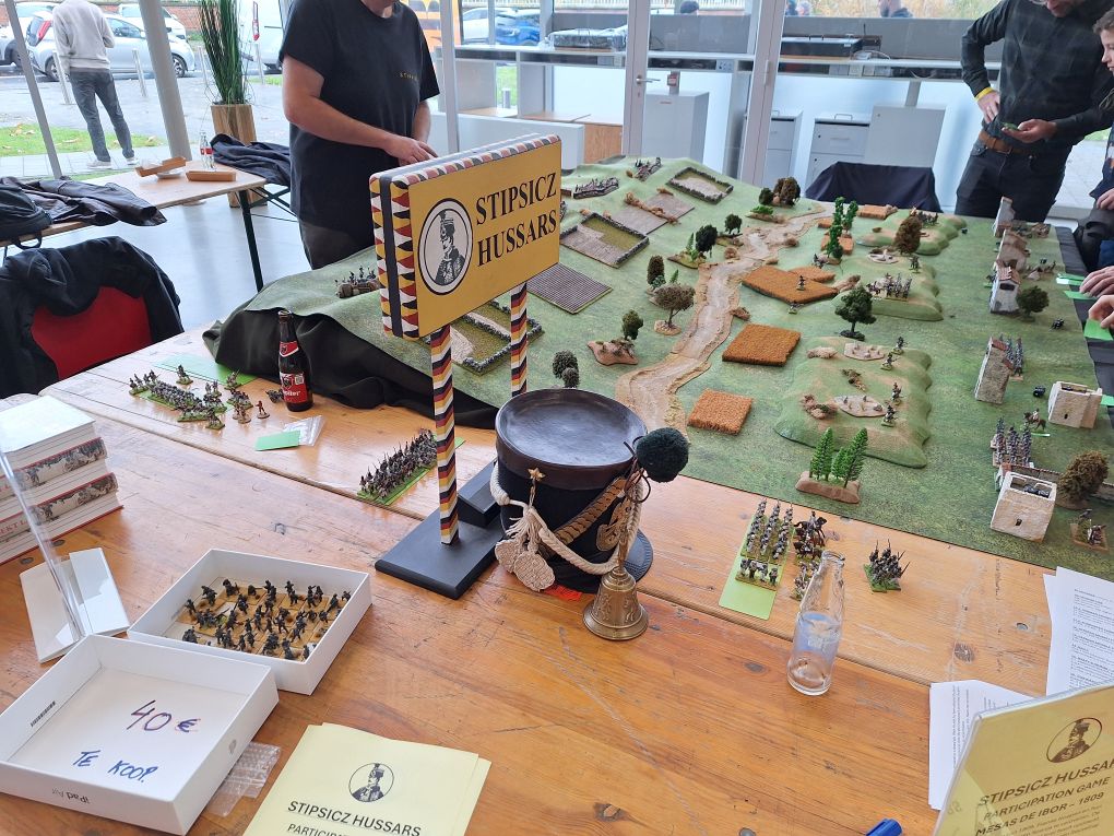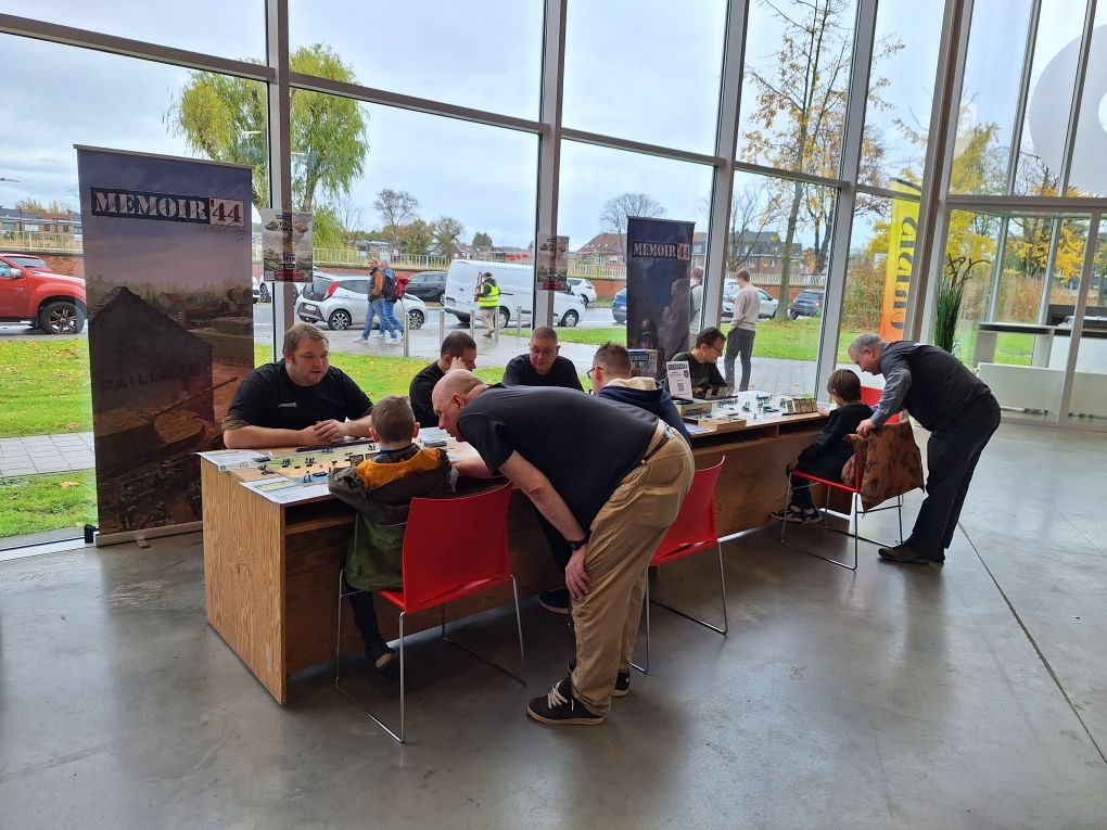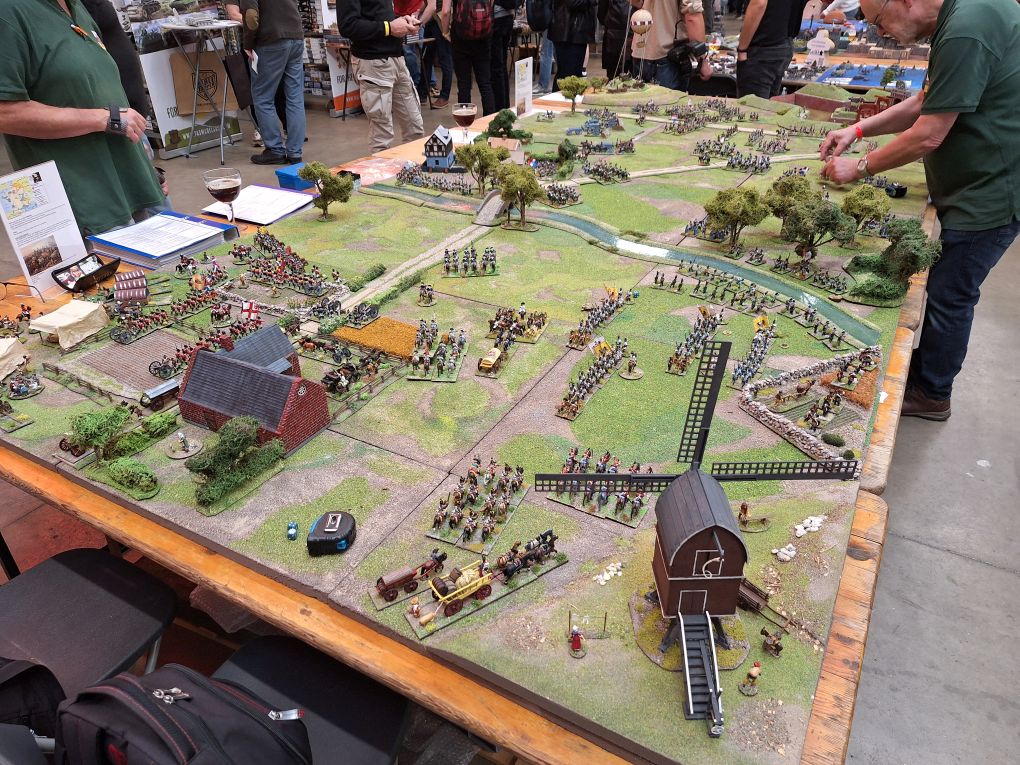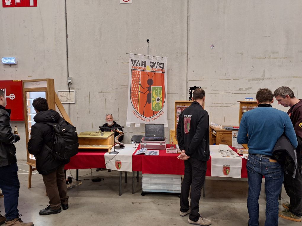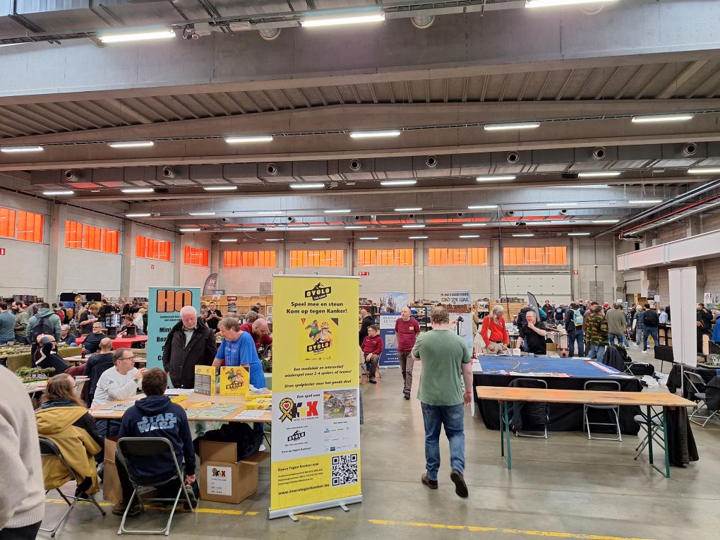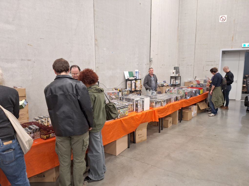 Im Wesentlichen besteht die neue Lokation der Crisis aus drei Hallen. Da wäre natürlich als allererstes die Eingangshalle welche fast vollständig von Fenstern umgeben ist. Man konnte also bereits in der Warteschlange zur Kasse hinein stieren oder die Speisekarte des Foodtrucks studieren der prominent vorm Eingang platziert war. Am frühen Nachmittag musste ich mir allerdings nicht die Zeit vertreiben, da schlicht keine Warteschlange existierte. So ging auch das Angebot des Foodtrucks an mir vorüber aber im späteren Verlauf habe ich auf jeden Fall mehr als einmal belgische Pommes mit Stoofvlees (Ja, die Belgier bieten neben Ketchup und Mayo auch mal eben ein zünftiges Biergulasch als „Dip“ an.) gesehen die mit Genuss vernichtet wurden. In den 15 Euro Eintritt waren auch drei Chips enthalten mit denen man sich in der Halle mit Getränken versorgen konnte. Das reichte entweder für einen Softdrink oder Kaffee und eine kleine Tüte Chips oder eine Flasche Bier. Erfreulich war der angenehm große Sitzbereich mit Tischen und Stühlen sowie einige Stehtische. Wer eine Pause einlegen wollte hatte hier gute Gelegenheit dazu. Händler gab si in der Vorhalle keine, dafür aber eine Gruppe Reenactor und die ersten Spieltische. Von hier aus ging es in die große Halle.