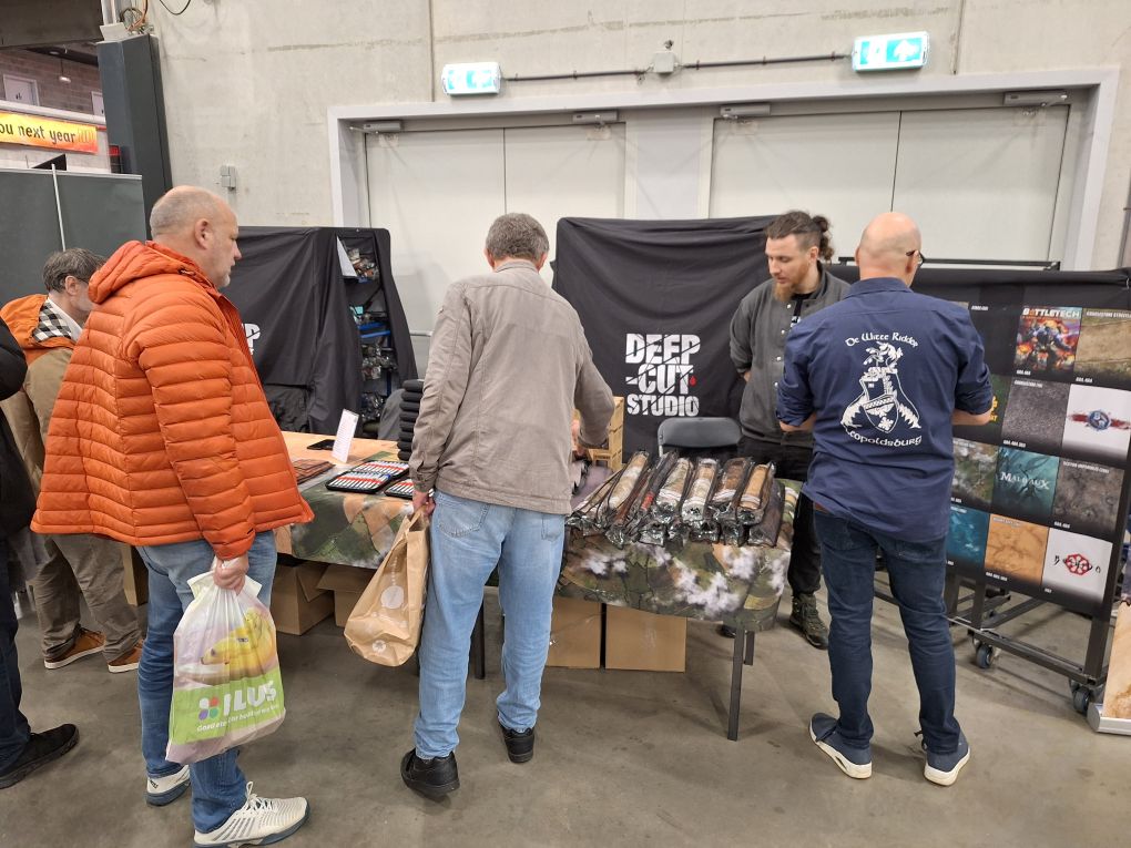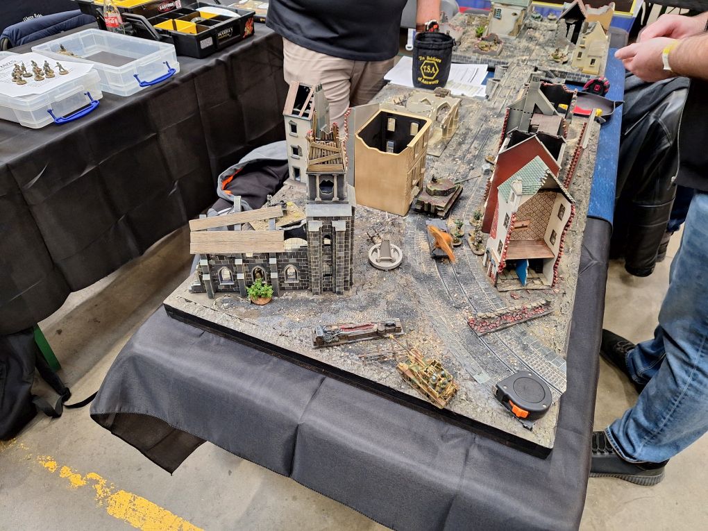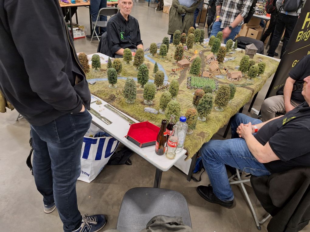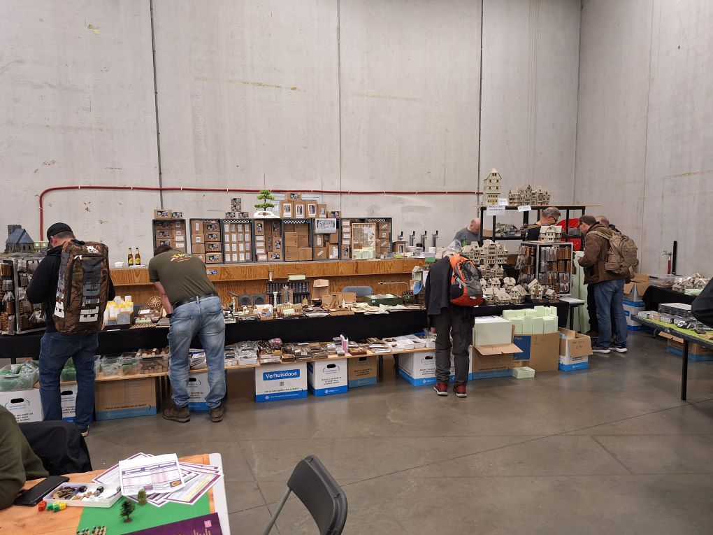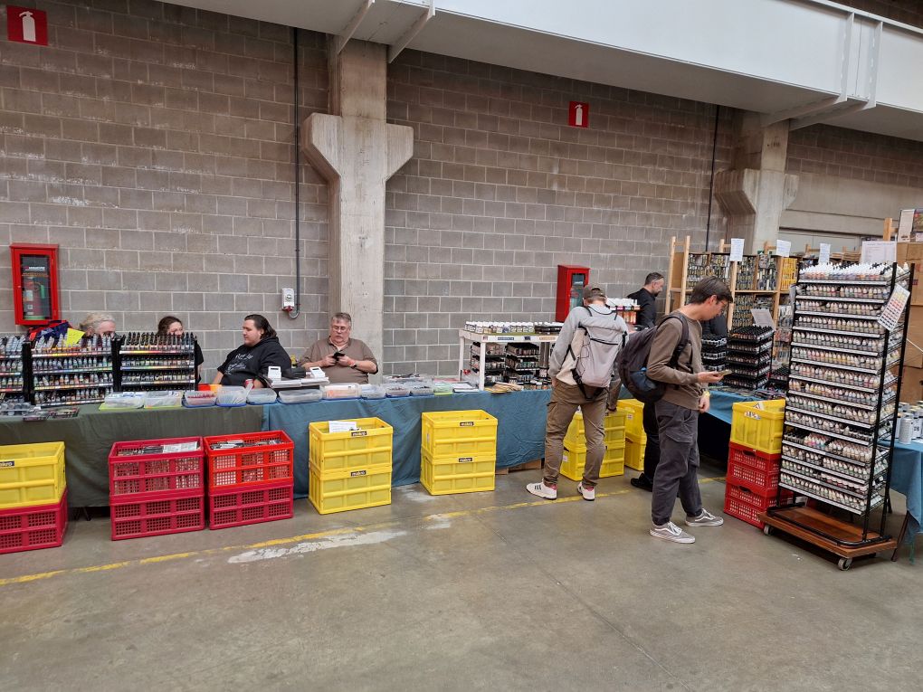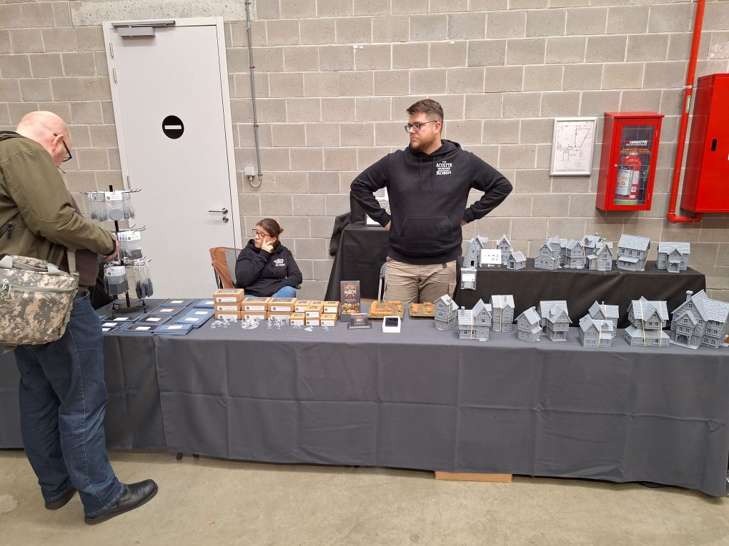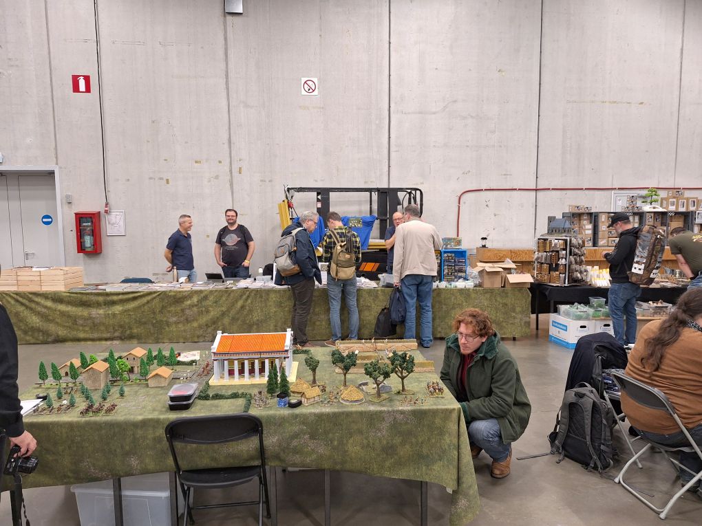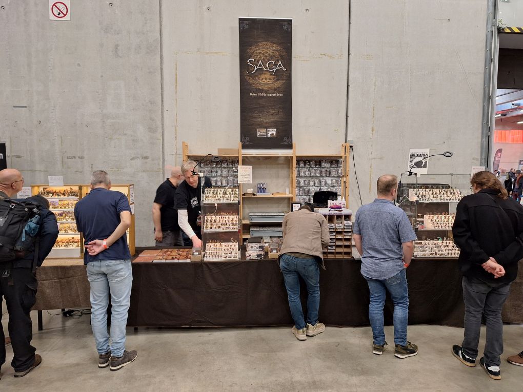 In der großen Halle fanden sich dann jede Menge Händler und weitere Spieltische. Das Angebot war reichhaltig. Neben allerlei Miniaturen gab es auch reine Geländeverkäufer und sogar einen Werkzeuganbieter. Bei den Geländehändlern konnte man den Wandel der Zeit erkennen. Früher waren hier Resinguss und Holz prominent, diesmal gab es schon deutlich mehr 3D-Drucke. Das Miniaturenangebot war reichhaltig, die Preise gut. Nicht umsonst sind einige Besucher am Ende mit vollgepackten Armen, Rucksäcken, Taschen oder manchmal sogar kleinen Handwägen aus dem Gebäude raus. Die Crisis war aber schon immer eher eine Kaufmesse. Im Vergleich zur Spiel gab es hier auch jede Menge Angebote für Fans des historischen Tabletops. An den Händlerständen mit weniger stark fokussiertem Sortiment waren vor allem (aber nicht ausschließlich) Produkte von Warlord Games, Rubicon, Victrix und Games Workshop vertreten. Natürlich fand man auch Star Wars Legion, Shatterpoint, Frostgrave und vieles mehr, aber mir kam es so vor als wären vor allem die erstgenannten Marken besonders prominent. Freebooter Miniatures mussten kurzfristig absagen, Stronghold Terrain hatten in der kleinen Halle einen Stand.